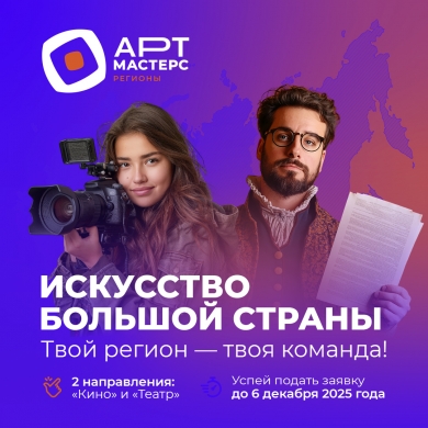 Открыт прием заявок на новый сезон «АртМастерс Регионы» – масштабных командных соревнований между федеральными округами России в направлениях «Театр» и «Кино».